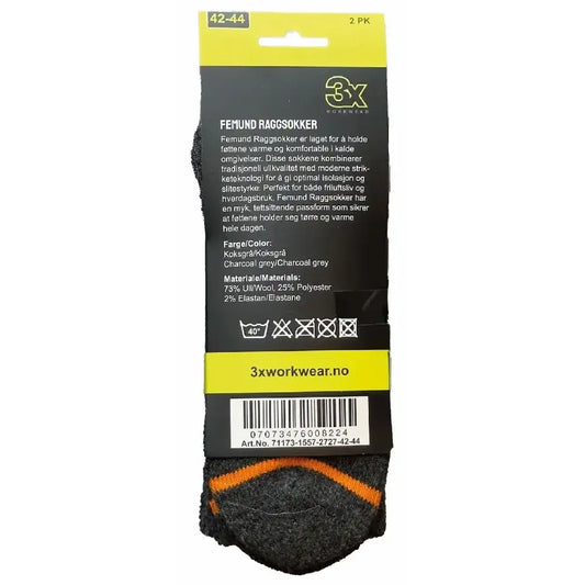 3X Femund Unisex Raggsokker Koksgrå 2pk