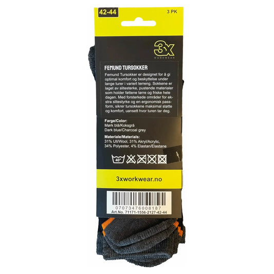 3pk Femund Unisex Tursokker Mørk Blå/Koksgrå