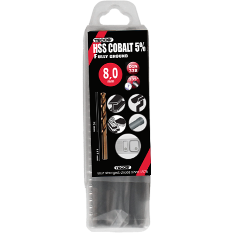 Tecos HSS bor -Cobalt bor 8,0x117 mm. DIN338 Box 10 stk.