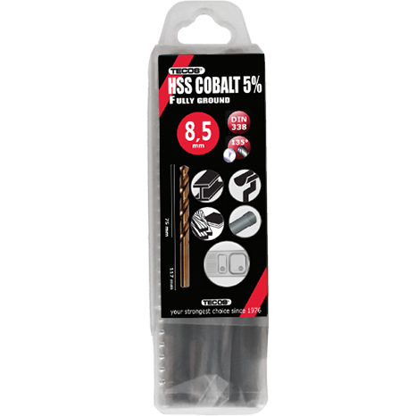 Tecos HSS bor -Cobalt bor 8,5x117 mm. DIN338 Box 10 stk.