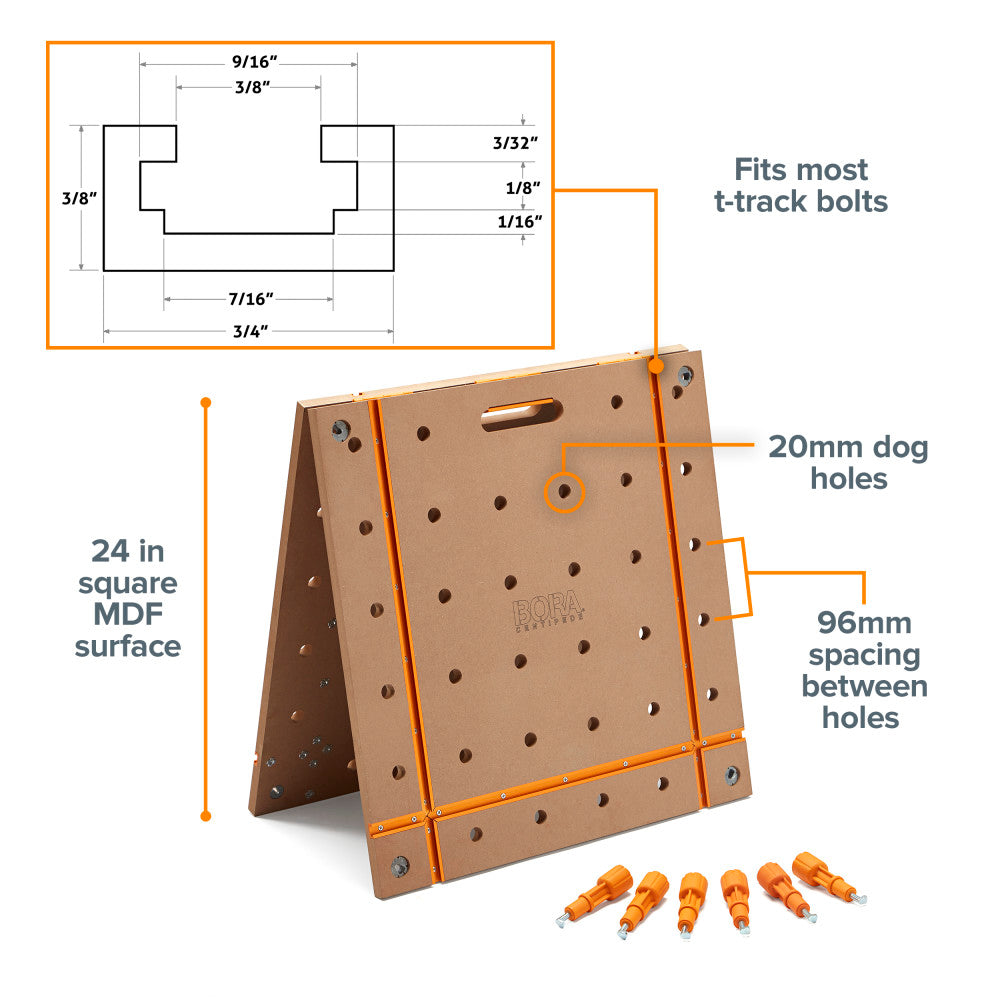 BORA Centipede 2 x 4 fot T-spor bordplate – 20 mm hull for benkeklammer (dog holes)