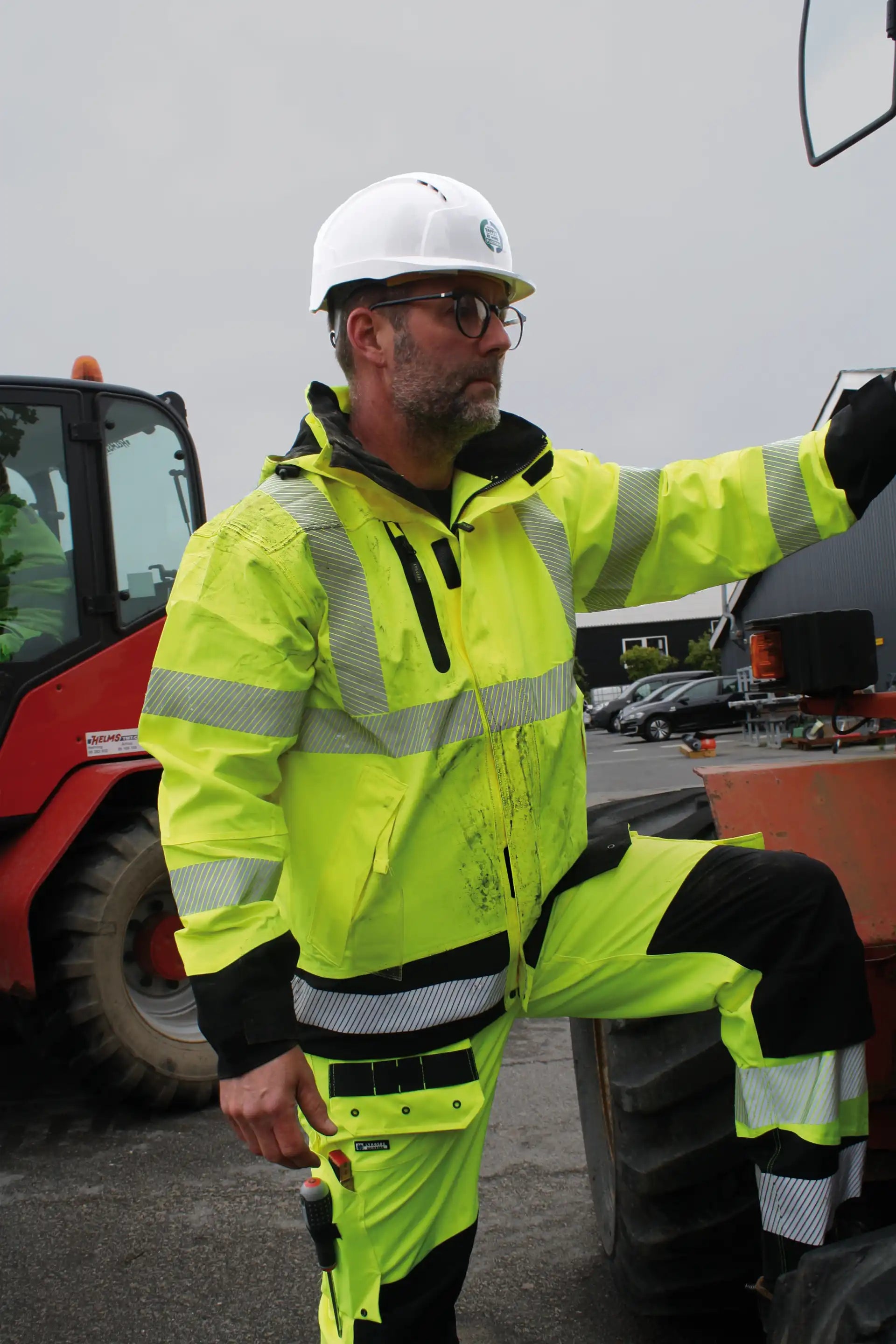 Lyngsøe sine Hi-Vis pustende regnbukser i stretchkvalitet er designet for både komfort og synlighet, ideelle for krevende arbeidsforhold. Buksene har en elastisk midje som gir en god passform, samt avtagbare, elastiske skulderstropper for ekstra støtte.