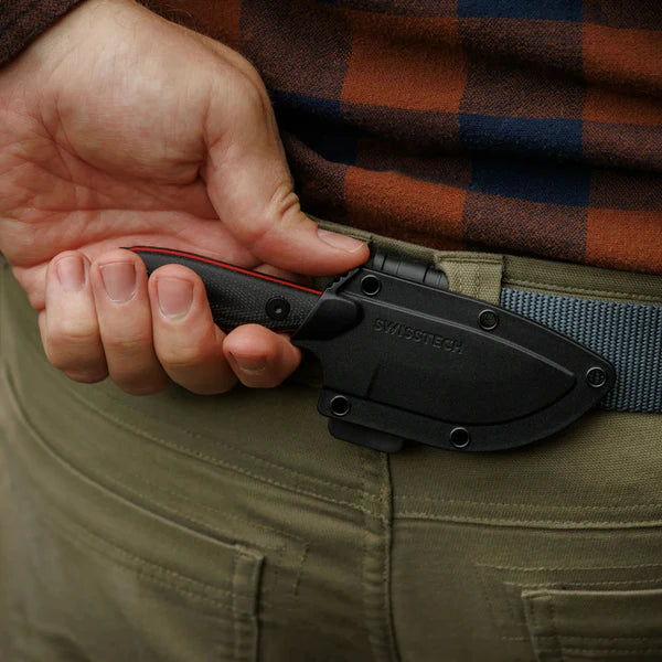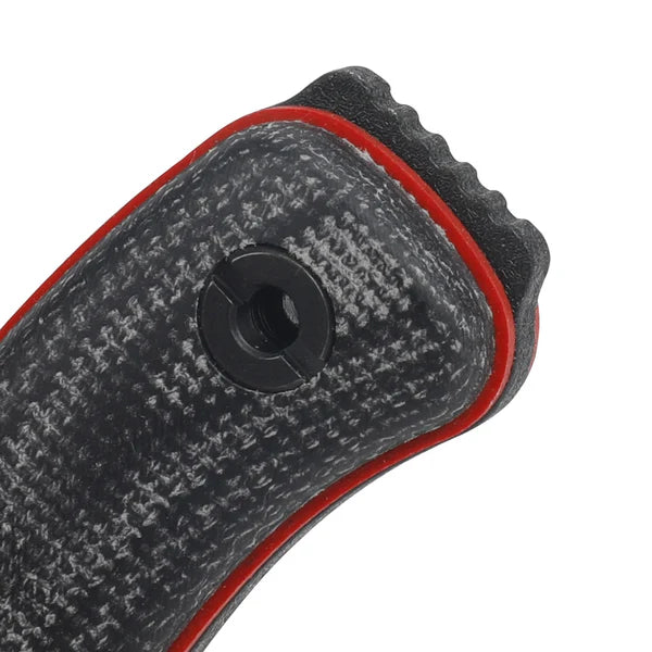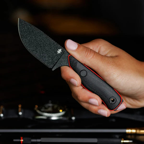 Canvas Micarta med lagdelte røde G10-detaljer Et knivhåndtak er mer enn bare et sted å holde – det er forbindelsen mellom deg og bladet. På Leicht er det valgt en ergonomisk Canvas Micarta-konstruksjon, supplert med lagdelte røde G10-detaljer, som kombinerer funksjonalitet, komfort og et markant visuelt uttrykk.