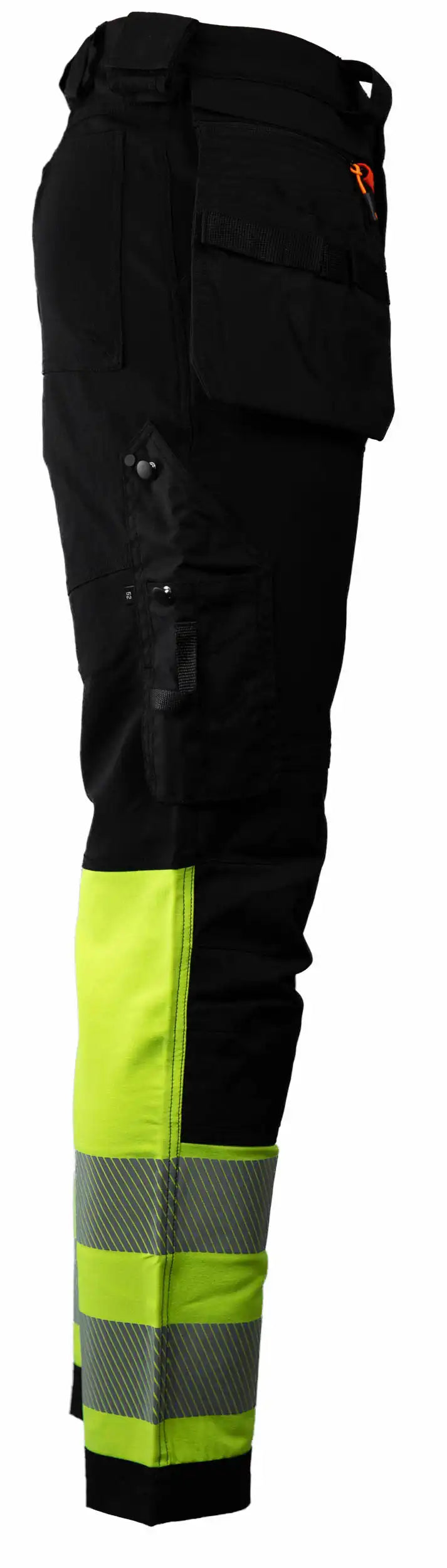 Tor-buksen fra 3X Workwear kombinerer funksjonalitet, komfort og synlighet i én og samme arbeidsbukse. Denne modellen har kort benlengde og er utstyrt med praktiske knelommer for knebeskyttere samt avtagbare hengelommer som gir fleksibel oppbevaring etter behov. Buksen leveres i sort med fluoriserende gule eller oransje detaljer, og oppfyller synlighetskravene i henhold til EN 20471 klasse 1.
